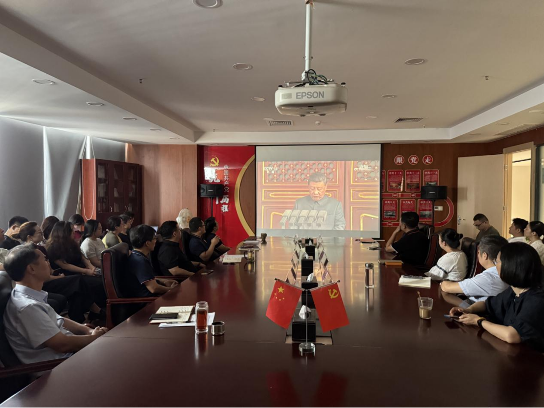 为确保全员深度参与,长少集团分区域设置观看点,让每一位员工都能沉浸式感受大会氛围。公司领导班子成员、首席编辑、总监、支部书记及委员、工会主席及委员、团委书记及委员、党员代表等在13楼党员活动室集中观看,另在其他部门设立观看点,以学习强化责任担当。