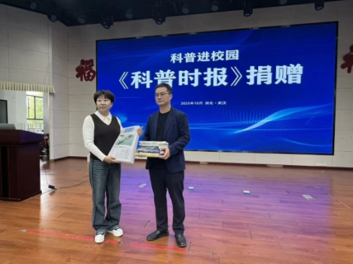 活动伊始,一场温馨的捐赠仪式率先登场。长江少年儿童出版社(集团)有限公司科普分社社长谢瑞峰代表出版社和科普时报社,向书城路小学捐赠了《科普时报》校园专刊及系列科普图书。整齐的报纸与装帧精美的图书,不仅是知识的载体,更饱含着对青少年科学素养提升的殷切期望。书城路小学杨校长代表学校郑重接受捐赠,她在致辞中动情表示:“感谢各主办单位与出版机构的暖心关怀,这些科普读物”旨在整合优质科普资源,将科学知识与健康理念送到青少年身边,为他们的成长注入科学力量。