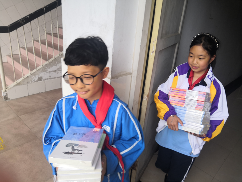 课间休息时,同学们在老师的指导下抓紧时间搬运、整理捐赠的图书。此次捐赠的图书有文史启蒙,也有科普读物,还有各种绘本与中外名著,种类非常丰富,其中大部分是畅销书,是经过读者检验过的优秀作品。此次捐赠,大大扩充了学校阅览室和班级图书角的图书资源,丰富了孩子们的课外生活。